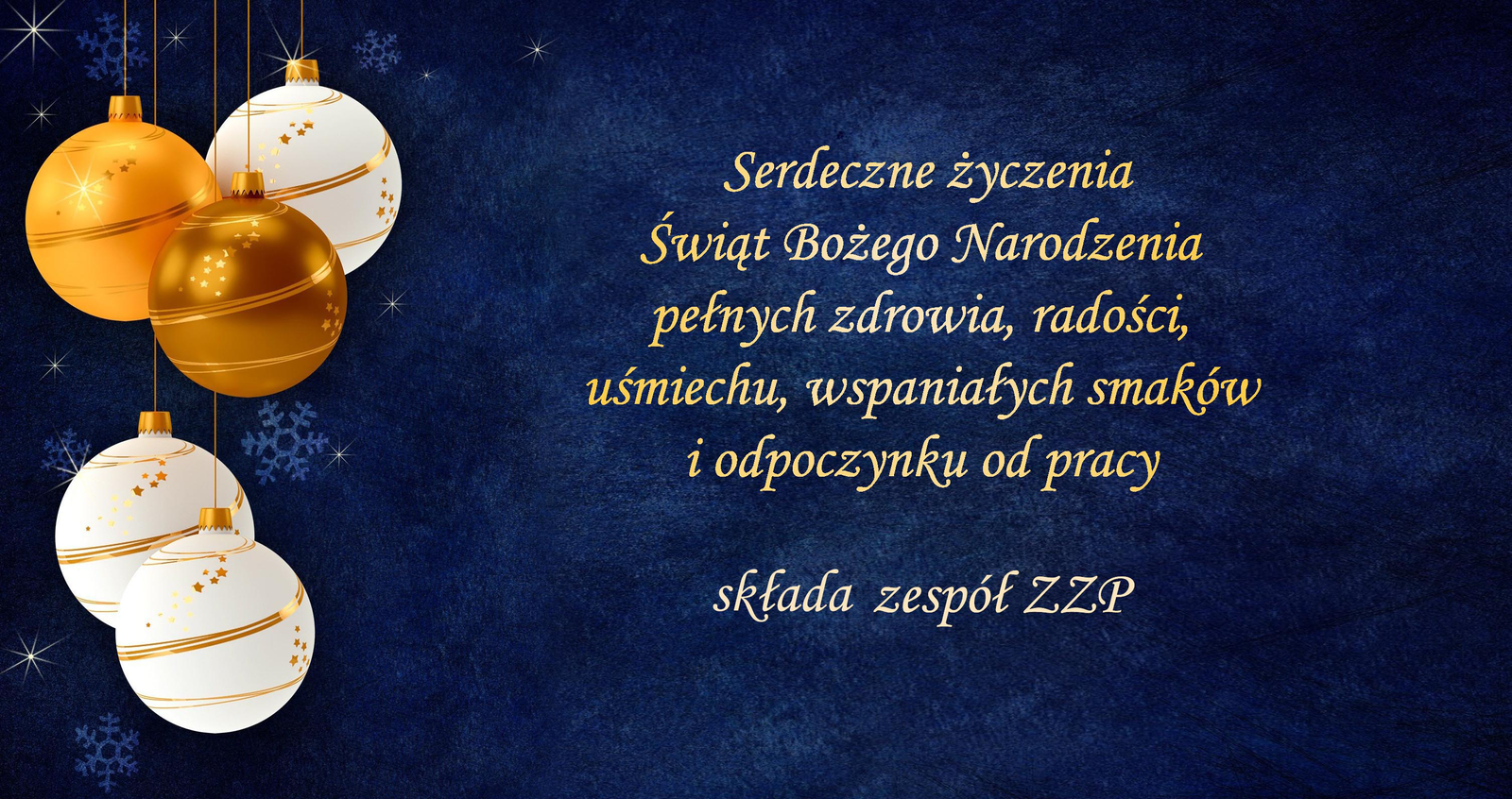 Serdeczne życzenia Świąt Bożego Narodzenia pełnych zdrowia, radości, uśmiechu, wspaniałych smaków i odpoczynku od pracy składa zespół ZZP.