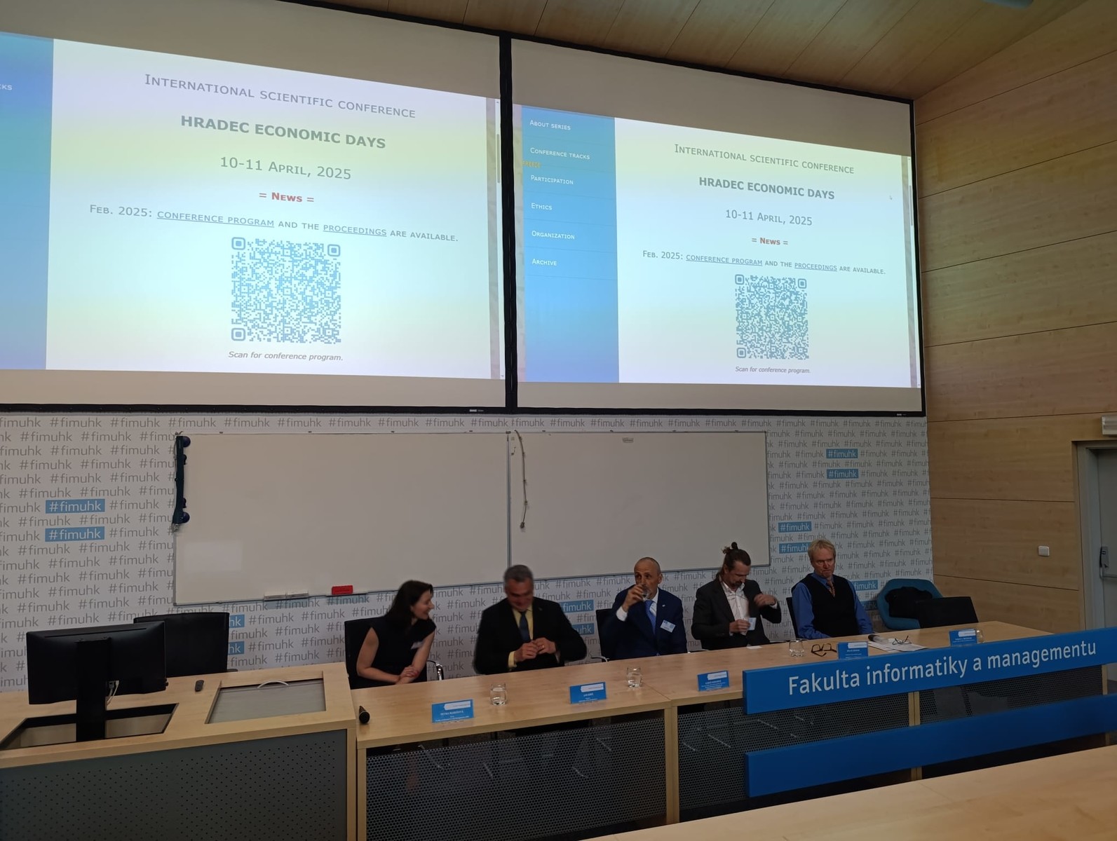 W dniach 10-11.04.2025 reprezentowałyśmy Zakład Zarządzania Przedsiębiorstwem na 23. międzynarodowej konferencji naukowej Hradec Economic Days 2025. Na wydarzenie pojechałyśmy w składzie: dr hab. Teresa Piecuch, prof. PRz, dr Aldona Migała-Warchoł, dr Jolanta Stec-Rusiecka oraz koleżanka z Zakładu Metod Ilościowych, dr Katarzyna Chudy-Laskowska.