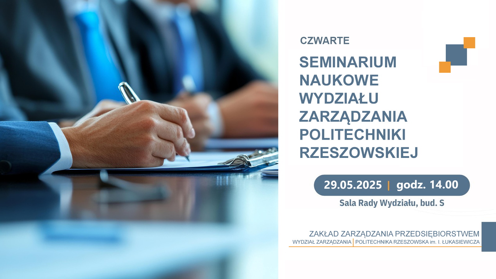 Wydarzenie rozpocznie się w czwartek, 29.05.2025 r. o godzinie 14:00 w sali Rady Wydziału (budynek S, Wydział Zarządzania) i potrwa około trzech godzin.